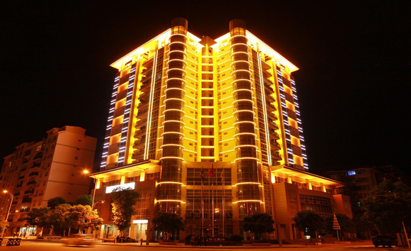 建筑頂部裝飾部分采用投光燈;建筑立面采用大功率及窄光束投光燈;玻璃幕墻內(nèi)采用內(nèi)透效果;建筑底部采用寬光束投光燈。