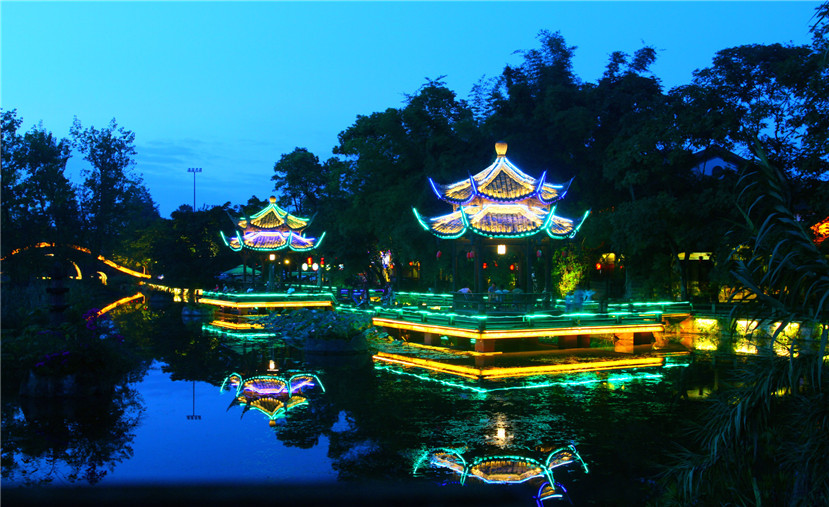 亮化提升后的龍潭廣場,是進入黃龍溪古鎮的門戶。