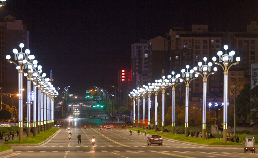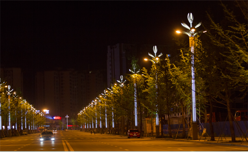 為進(jìn)一步完善城市照明效果,鞏固建設(shè)成果。營山縣公共事業(yè)管理局于2016年底至2017年初對民政局至一環(huán)路南北段以及芙蓉大道一段進(jìn)行了整體的道路照明路燈升級改造,四川華體照明科技股份有限公司根據(jù)兩條道路的基本情況,結(jié)合當(dāng)?shù)匚幕厣謩e設(shè)計并安裝了春意盎然景觀燈和芙蓉中華燈。