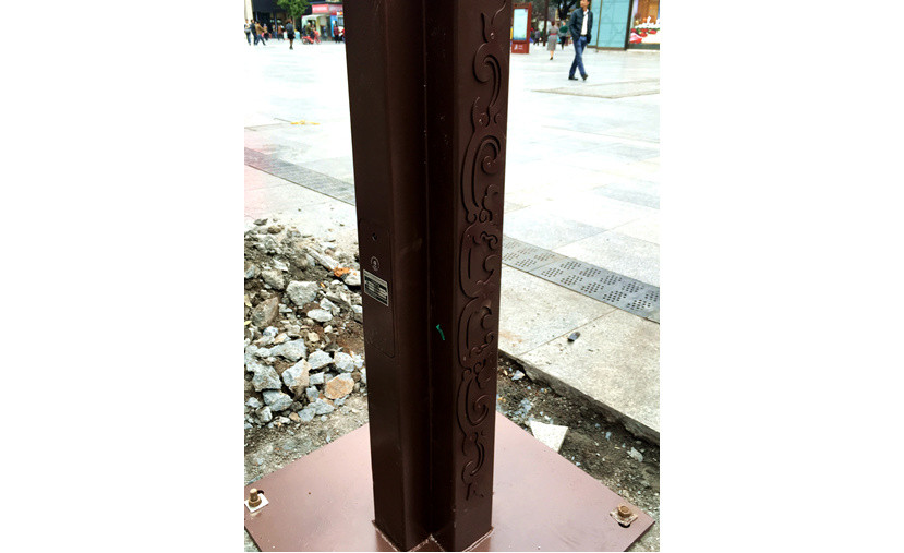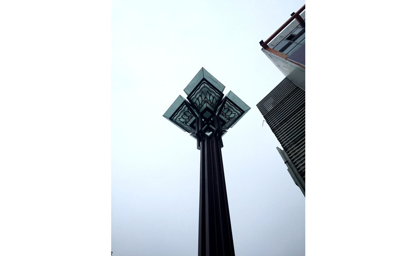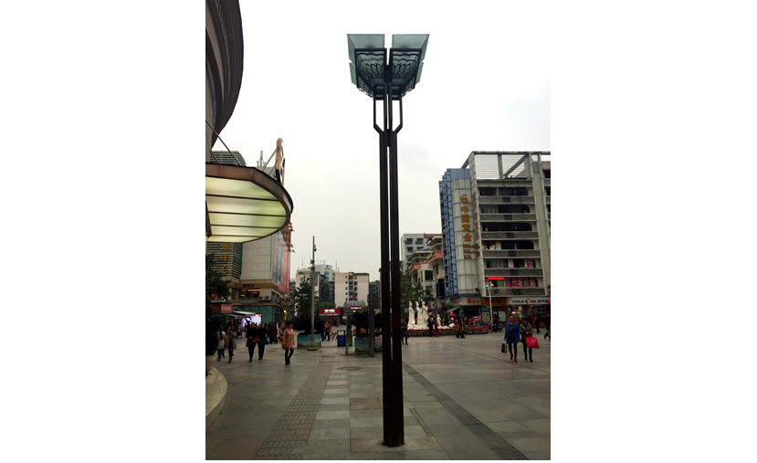 “斗”罩采用鋼化磨砂玻璃制成,搭配鏤空鐵花花紋,景觀性十足;光源采用高壓鈉燈,提高了城市道路照明的質(zhì)量、安全性和環(huán)保性;燈桿外形則充滿(mǎn)幾何感,通透的小矩桿增強(qiáng)了立體效果。