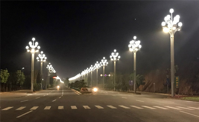 華體照明根據湖南和芙蓉悠久的歷史淵源,為業主方量身定制了芙蓉文化定制路燈。芙蓉燈兼具道路照明和景觀照明功能,外觀大氣,造型簡潔,讓芙蓉燈也成為益陽東部新區一張靚麗的風景線。