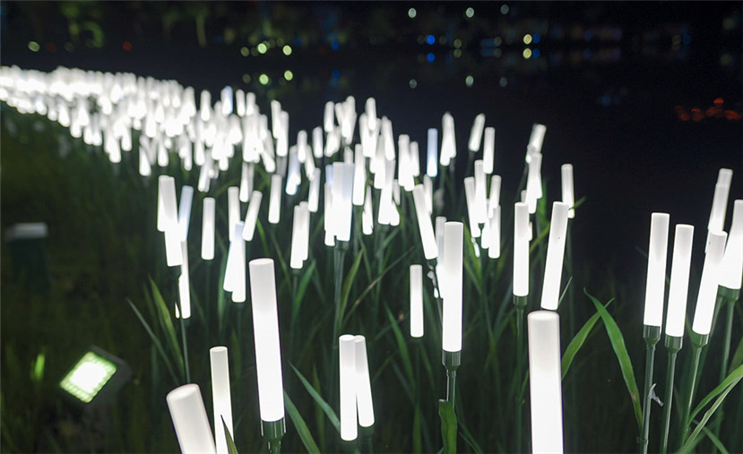 在五個(gè)公園夜景打造方面,華體科技根據(jù)公園的主題定制了與公園環(huán)境相融合的燈光小品,如麥穗燈、蘆葦燈。定制燈光小品在夜間散發(fā)出柔和的光,讓公園夜景更美輪美奐。