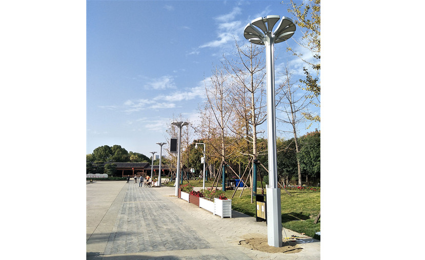 四川華體照明科技股份有限公司(股票簡稱:華體科技 股票代碼:603679)為公園提供了華體專利設計的智慧路燈“智慧樹”,安裝在金銀湖公園的入口廣場處。