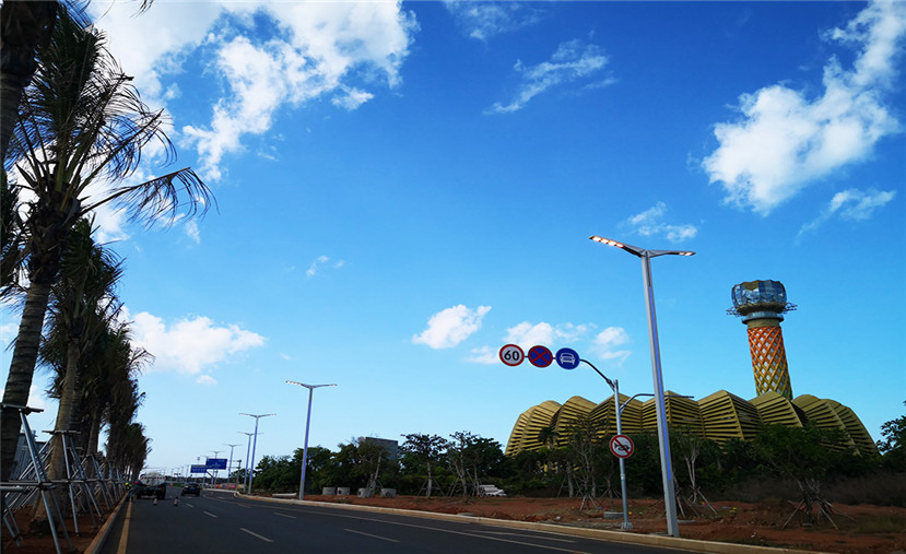 在江東大道的建設中,承擔夜間照明功能的路燈也是重要的一環,作為海口市高起點高定位的江東新區,在江東大道的道路照明建設方面,也是重點突出“海南特色、高點定位”。