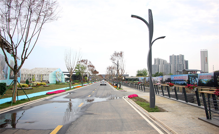 在改造升級過程中,四川華體照明科技股份有限公司(股票簡稱:華體科技 股票代碼:603679)為花鄉農居提供了“流光”、“山水閣”兩款智慧路燈,安裝在園區四條道路上。