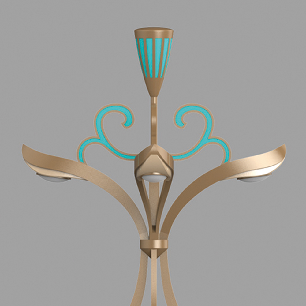 頂部蓮蓬的造型生動形象,流暢的花紋連接件,表現蓮花的婉約清雅;