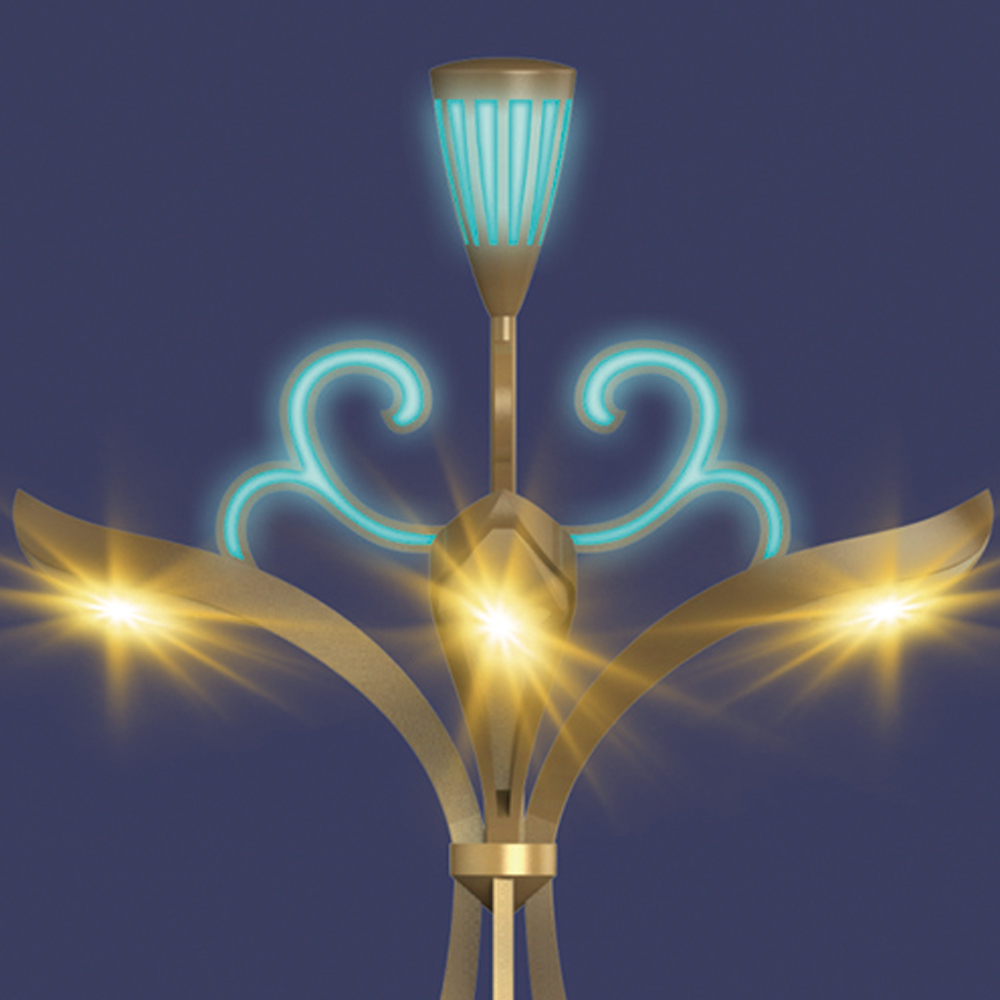 燈型以蓮花為創作元素,經過設計者的提煉,將蓮花與花瓶的形態相結合;