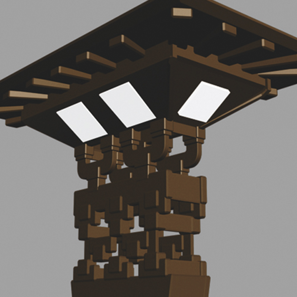 此燈型為大型景觀性中桿燈。用于城市主干道及景觀大道路交叉路口,也可用于廣場及公共場所的出入口;